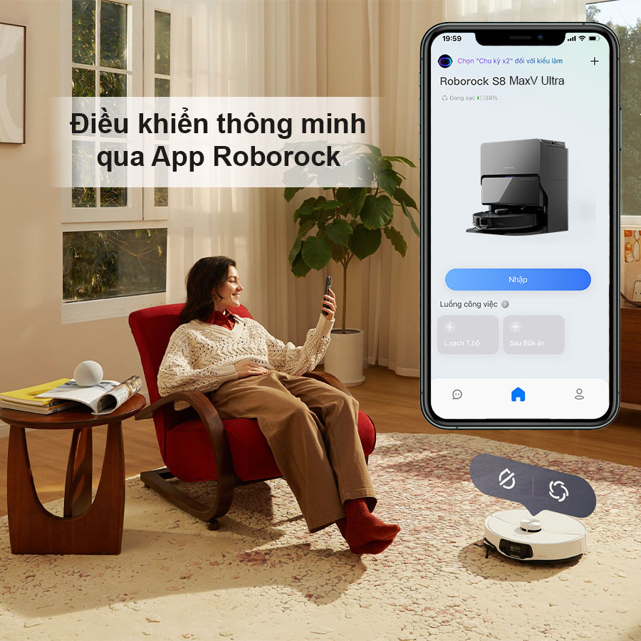 - Kết nối app Roborock điều khiển robot linh hoạt