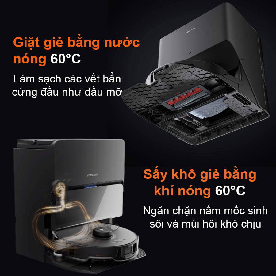 - Chổi chính và khăn lau nhà tự động nâng hạ